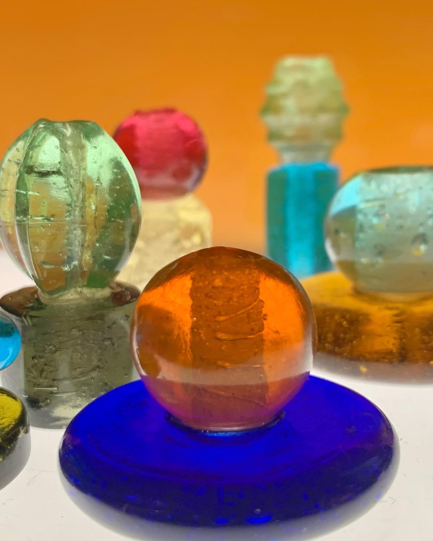 Set of 3 incense holders. Made using 1970's vintage Indian glass.