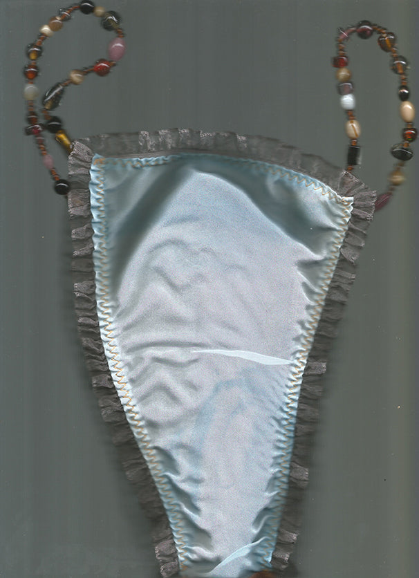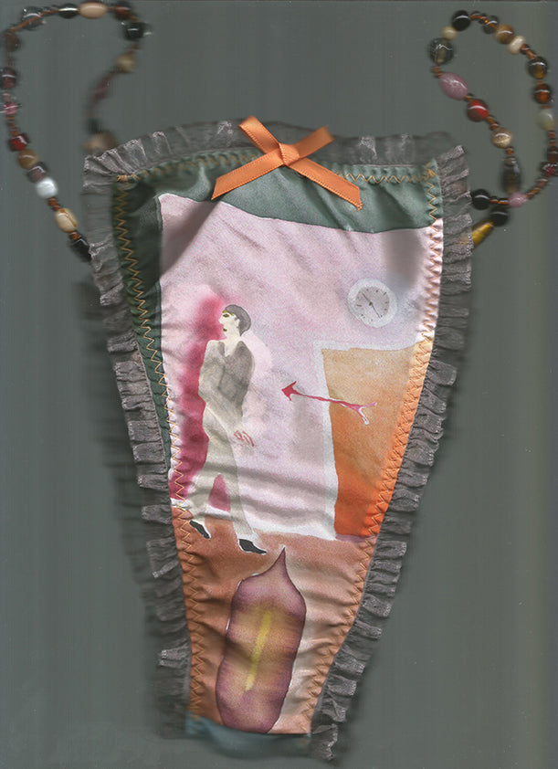 Chamber Sex Pot is a collaboration between Lana Nichols and Dominic Santos. All Pieces are composed of hand painted silk, glass beads, elastic, and lace trim. Each panty is crafted to be hung on the wall, or can be worn as a garment (gently).