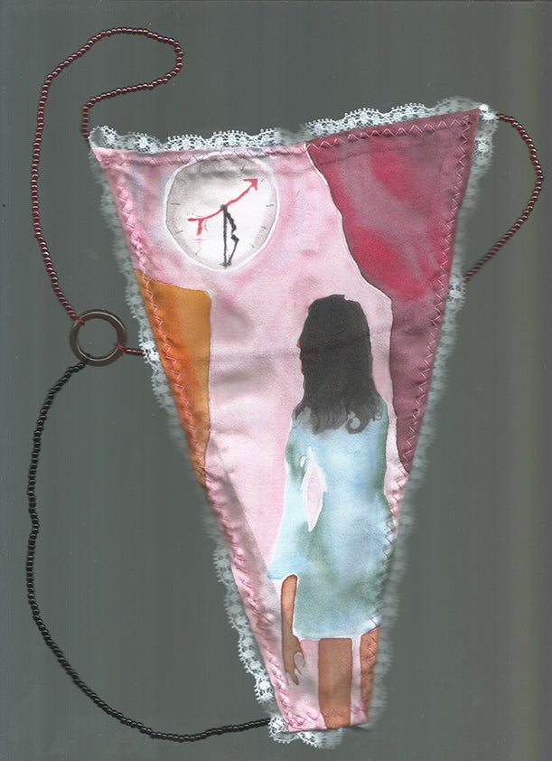 Chamber Sex Pot is a collaboration between Lana Nichols and Dominic Santos. All Pieces are composed of hand painted silk, glass beads, elastic, and lace trim. Each panty is crafted to be hung on the wall, or can be worn as a garment (gently).